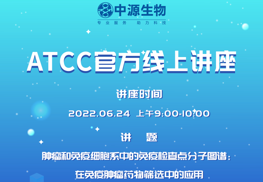 ATCC网络研讨会来啦!尊敬的ATCC用户:您好!我们诚挚的邀请您参加由美国ATCC官方和北京米兰online(中国)联合举办的有关"肿瘤和免疫细胞系中的免疫检查点分子图谱:在免疫肿瘤药物筛选中的应用"网络研讨会。2022-06-24 15:56:00.0
