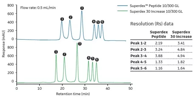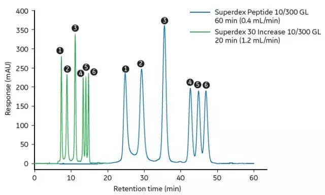 • 与原Superdex Peptide相比,在分辨率不变的前提下,Superdex 30 Increase的流速更高,节省ÄKTA机时。