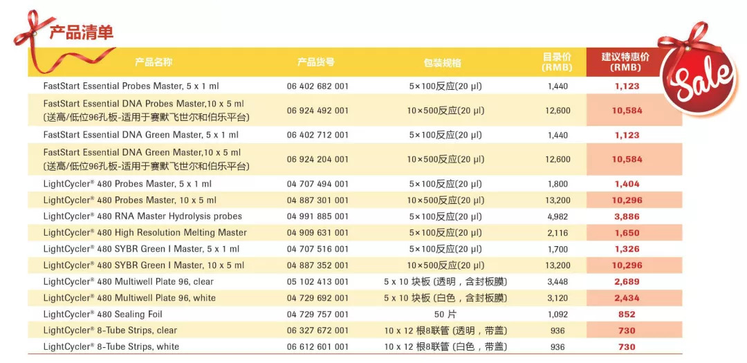 LightCycler® 480试剂,无论是基于荧光染料法、水解探针法的定量检测,还是基于高分辨熔解曲线的基因分型,都可在实时定量PCR中获得高扩增效率和高质量荧光信号,定量/定性结果精确度高。