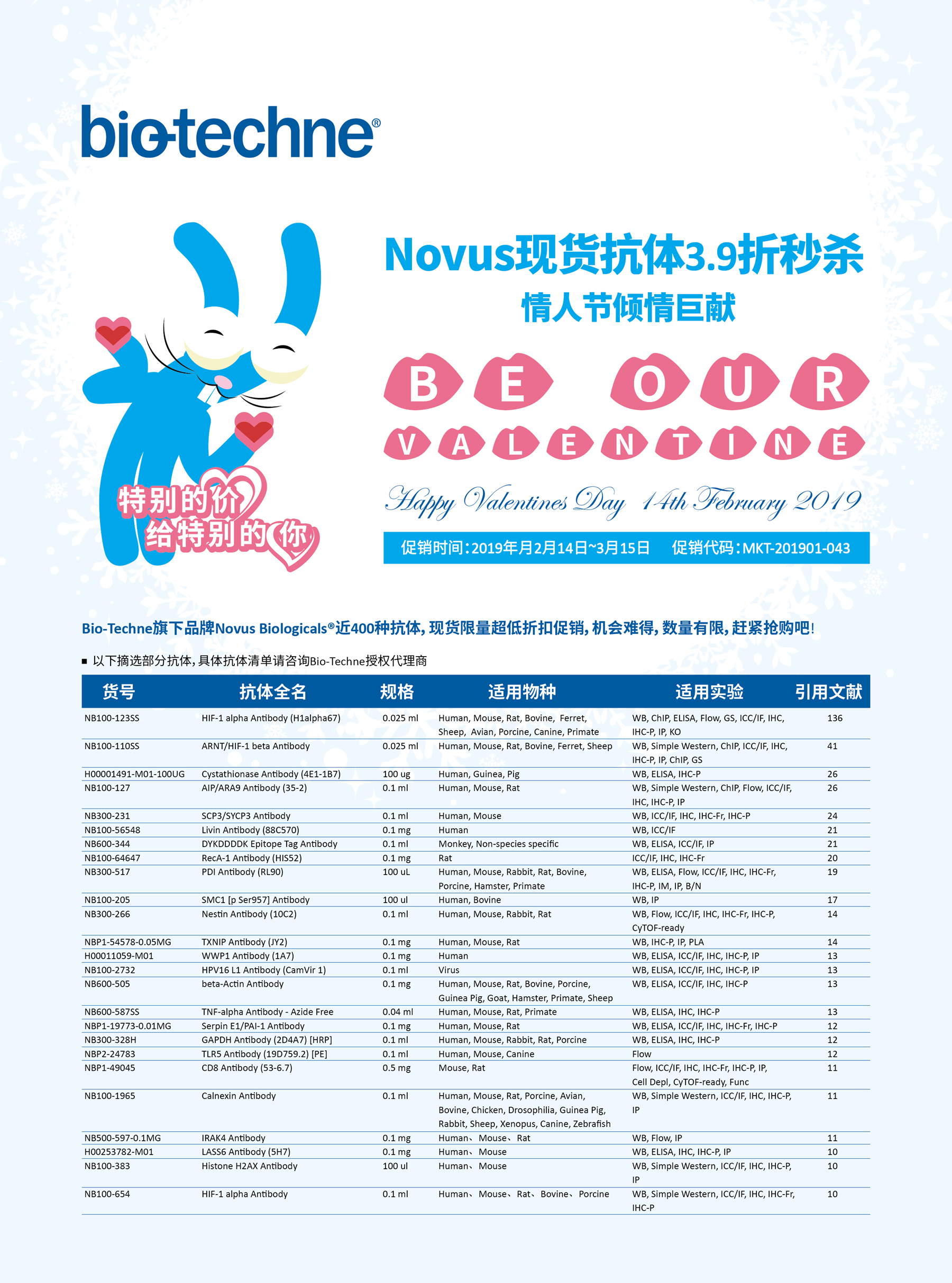 2)参与活动的抗体有约400种,全部为现货,每种抗体只有1支,3.9折秒杀,完整列表见下文。