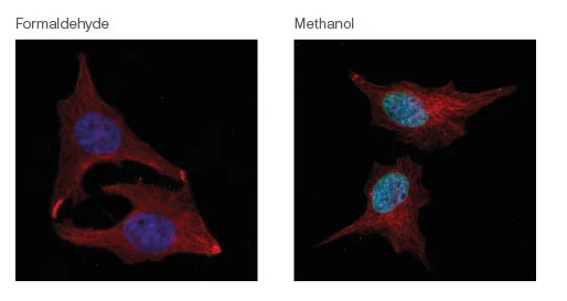 · 大多数低分子量的蛋白质、多肽和酶:对于细胞/细胞学样本制备,使用 4% 甲醛;对于组织切片,使用 10% 中性福尔马林缓冲(NBF)液;