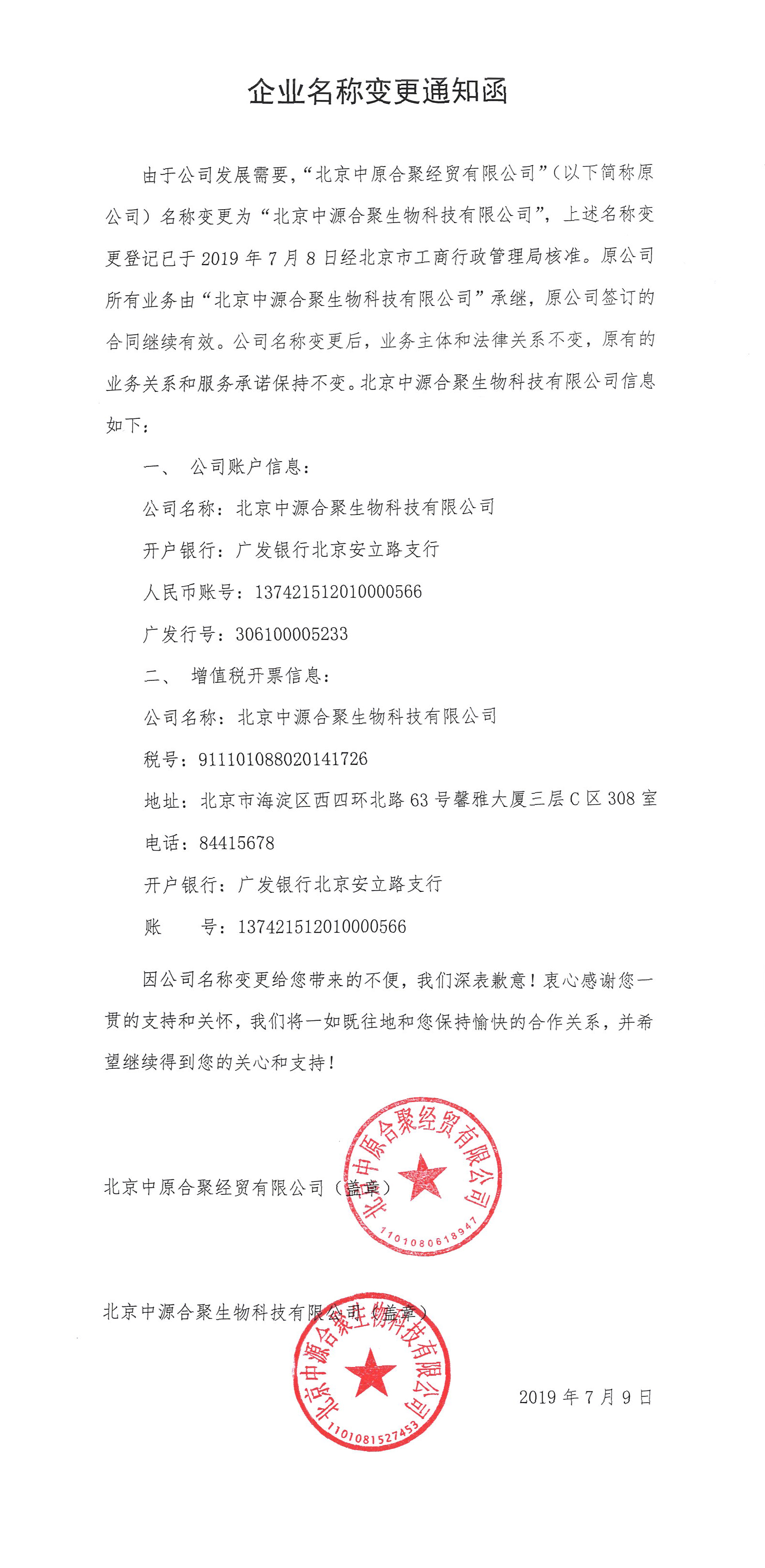 由于公司业务发展需要,“北京中原合聚经贸有限公司”(以下简称原公司)名称变更为“米兰官方版网站”。上述名称变更登记已与2019年7月8日经北京市工商行政管理局海淀分局核准。