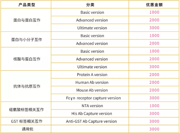 购买Biacore 指定套餐或单品,即可享受价格优惠(套餐产品仅供客户参考,客户可根据实际需要灵活选择,详情可与相关销售人员咨询),具体如下: